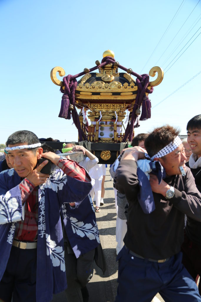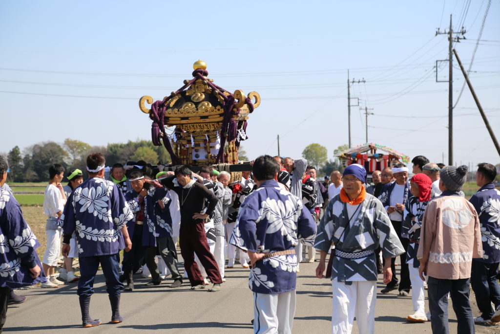 毎年4月に行われ、上梁八幡神社の地域の約40人が集まり、絢爛(けんらん)豪華な山車を担ぎ地域を練り歩きます。山車を担ぐ人は、20歳~70歳で構成されており、農家や兼業農家が多い。
