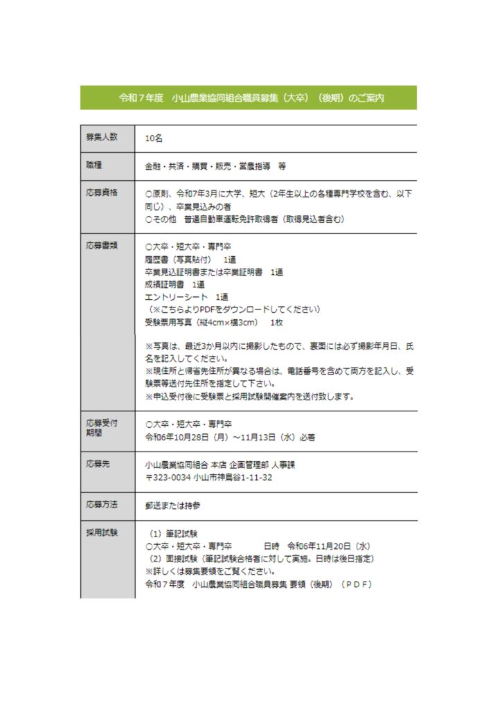 令和7年度小山農業協同組合職員募集(後期)のご案内
