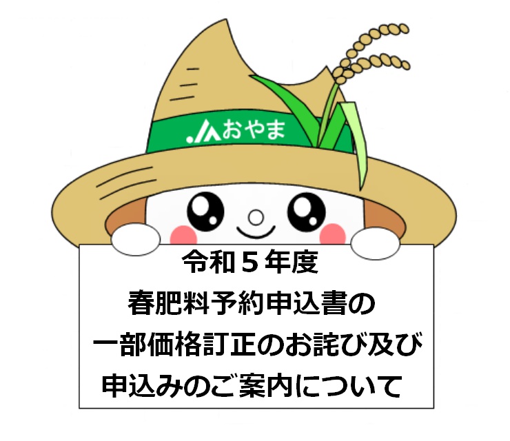 <令和5年産春肥料予約申込書の一部価格訂正のお詫び及び申込のご案内について
