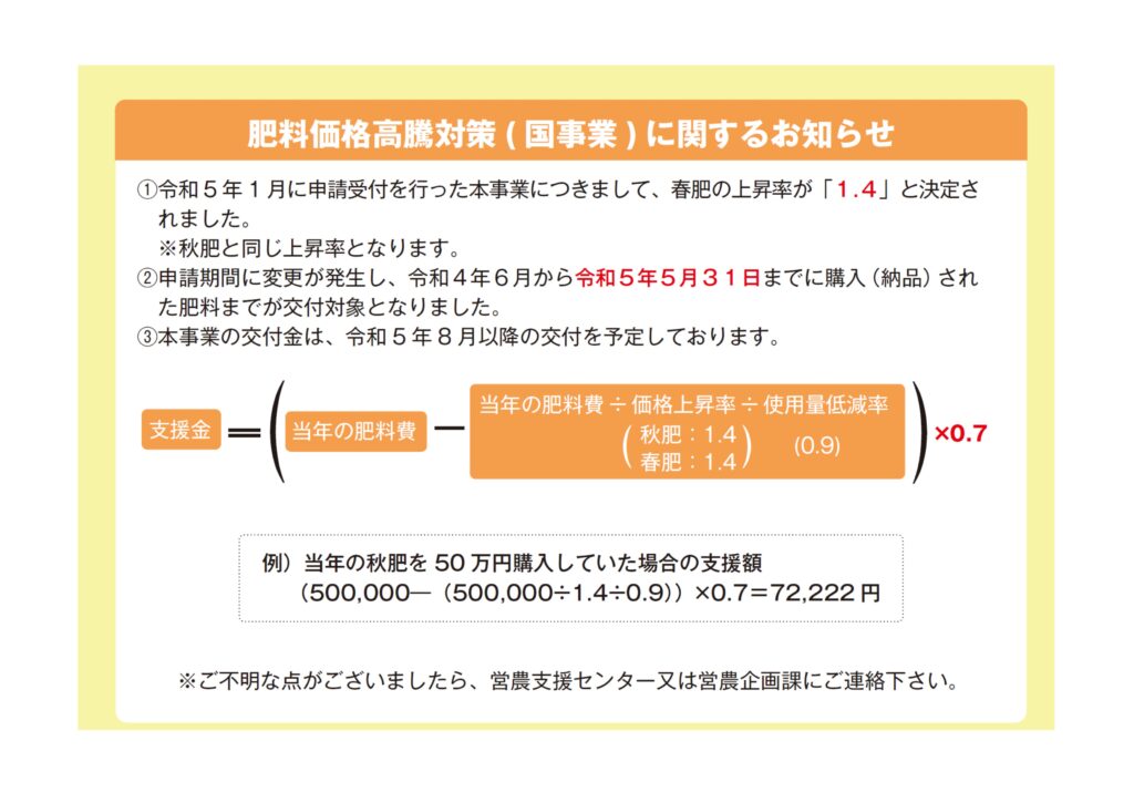 <肥料価格高騰対策(国事業)に関するお知らせ