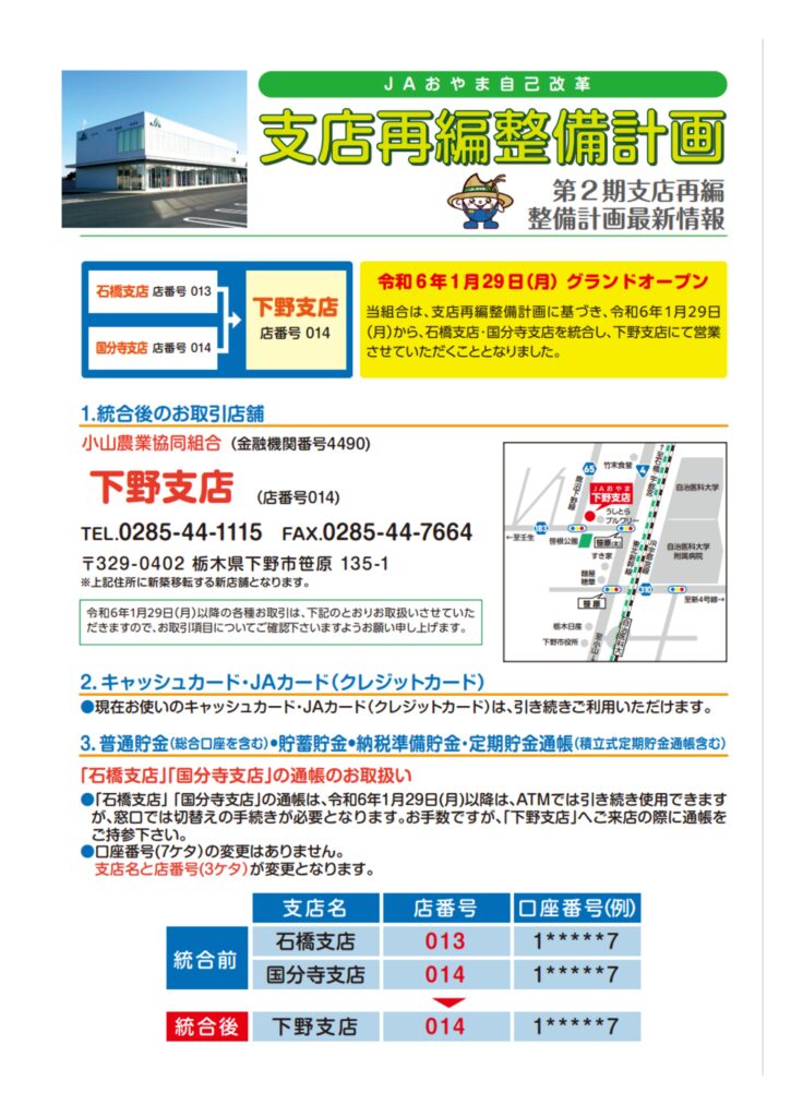 支店再編整備計画 第2期支店再編整備計画最新情報~下野支店~