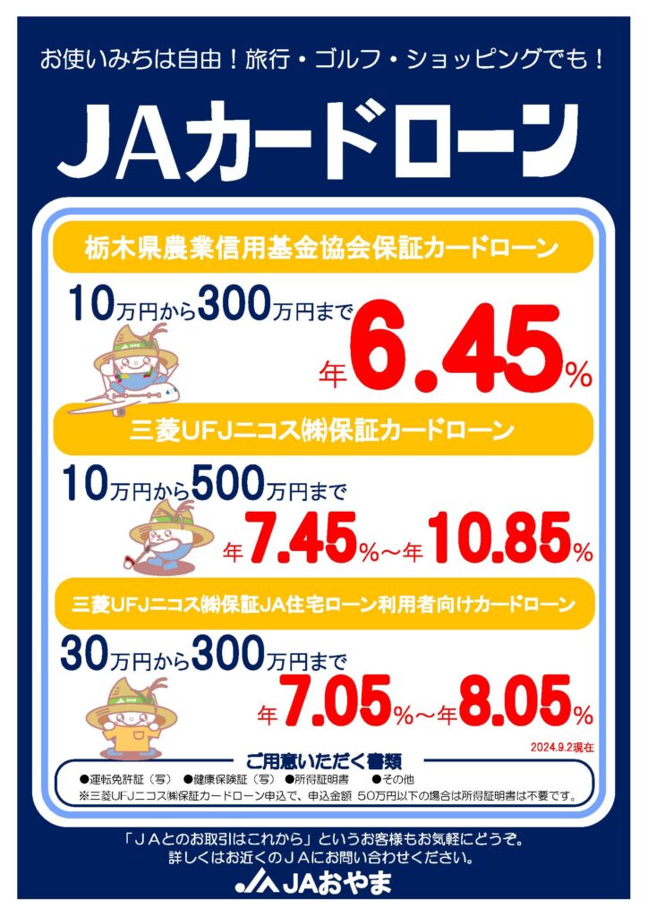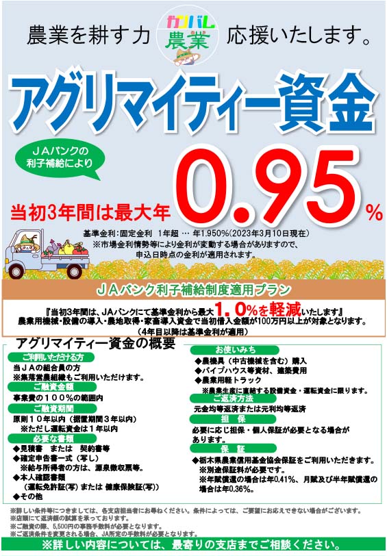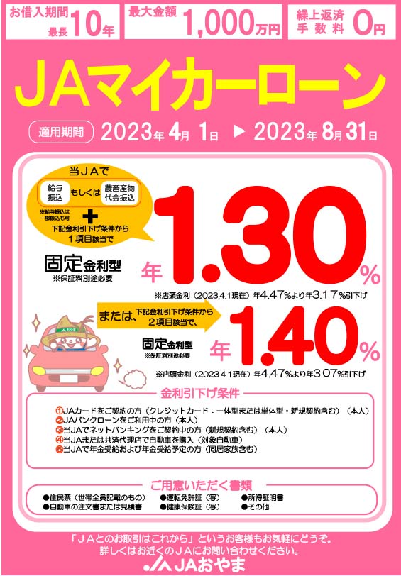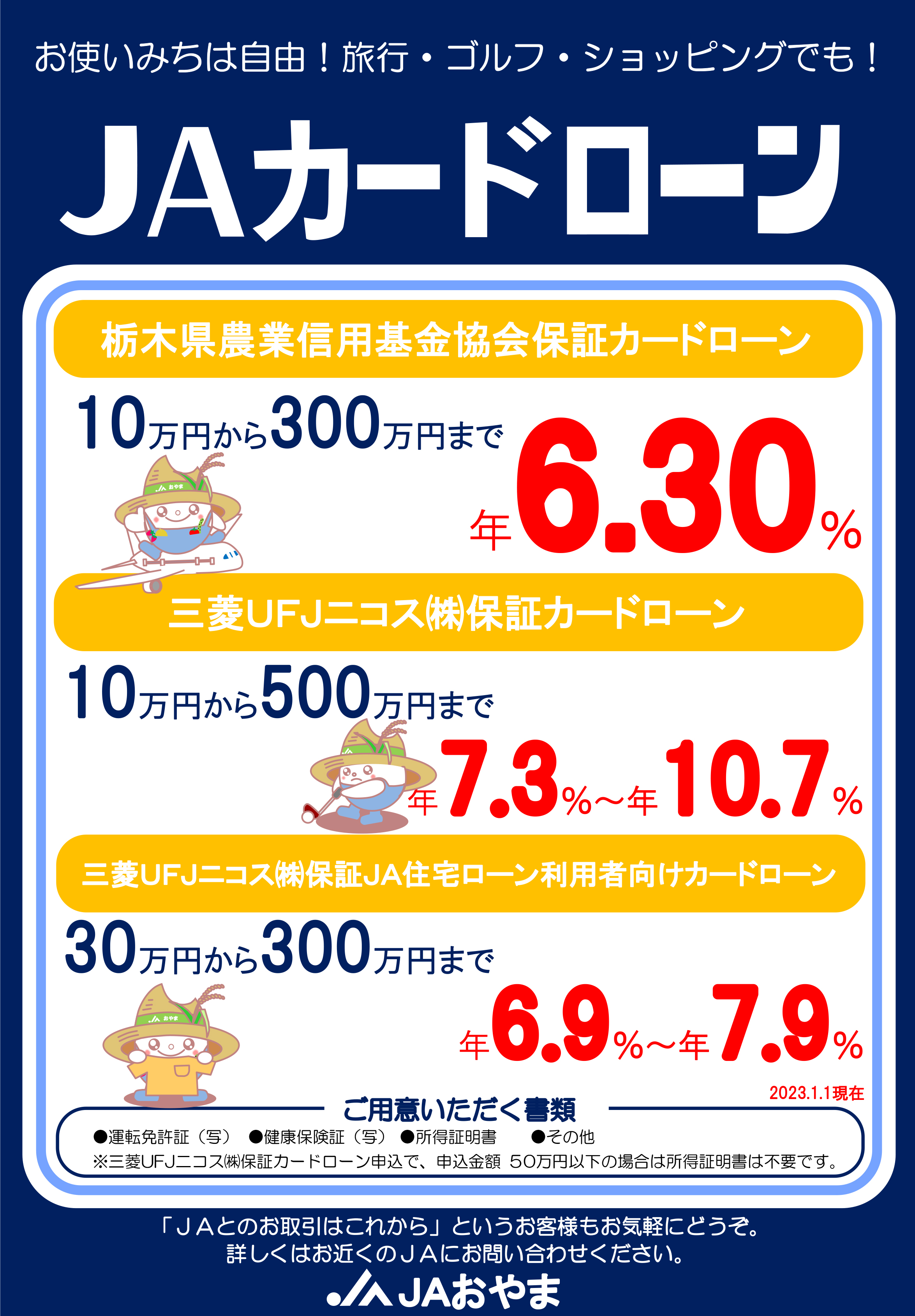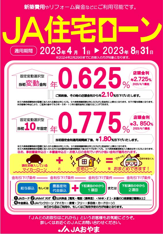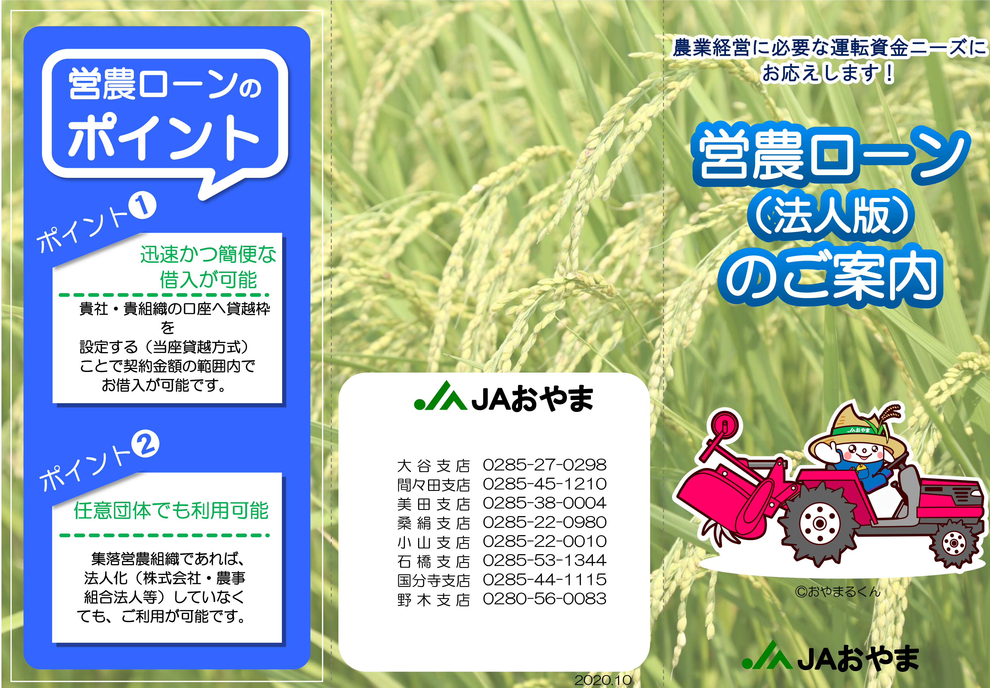 組合員や地域住民のみなさまへの住宅ローンやマイカーローンなど、各種ローン商品を提供しているほか、農業者・事業者のみなさまに必要な資金をご融資しております。また、地方公共団体、農業関連産業などへもご融資し、地域経済の質的向上・発展に貢献しております。さらに、国民金融公庫、農林漁業金融公庫等の融資の申込のお取次ぎもしております。