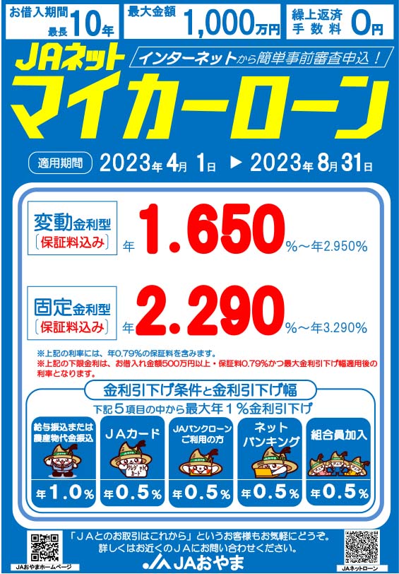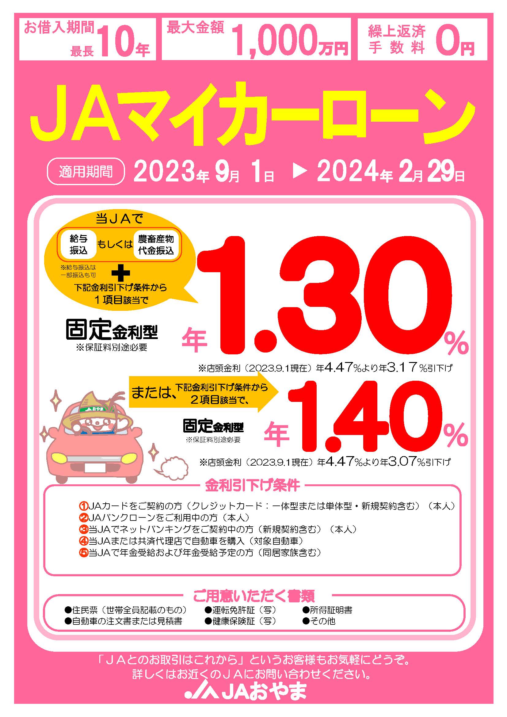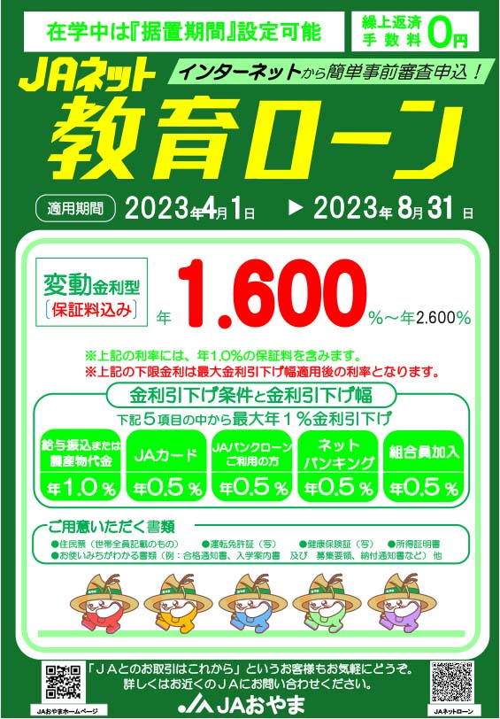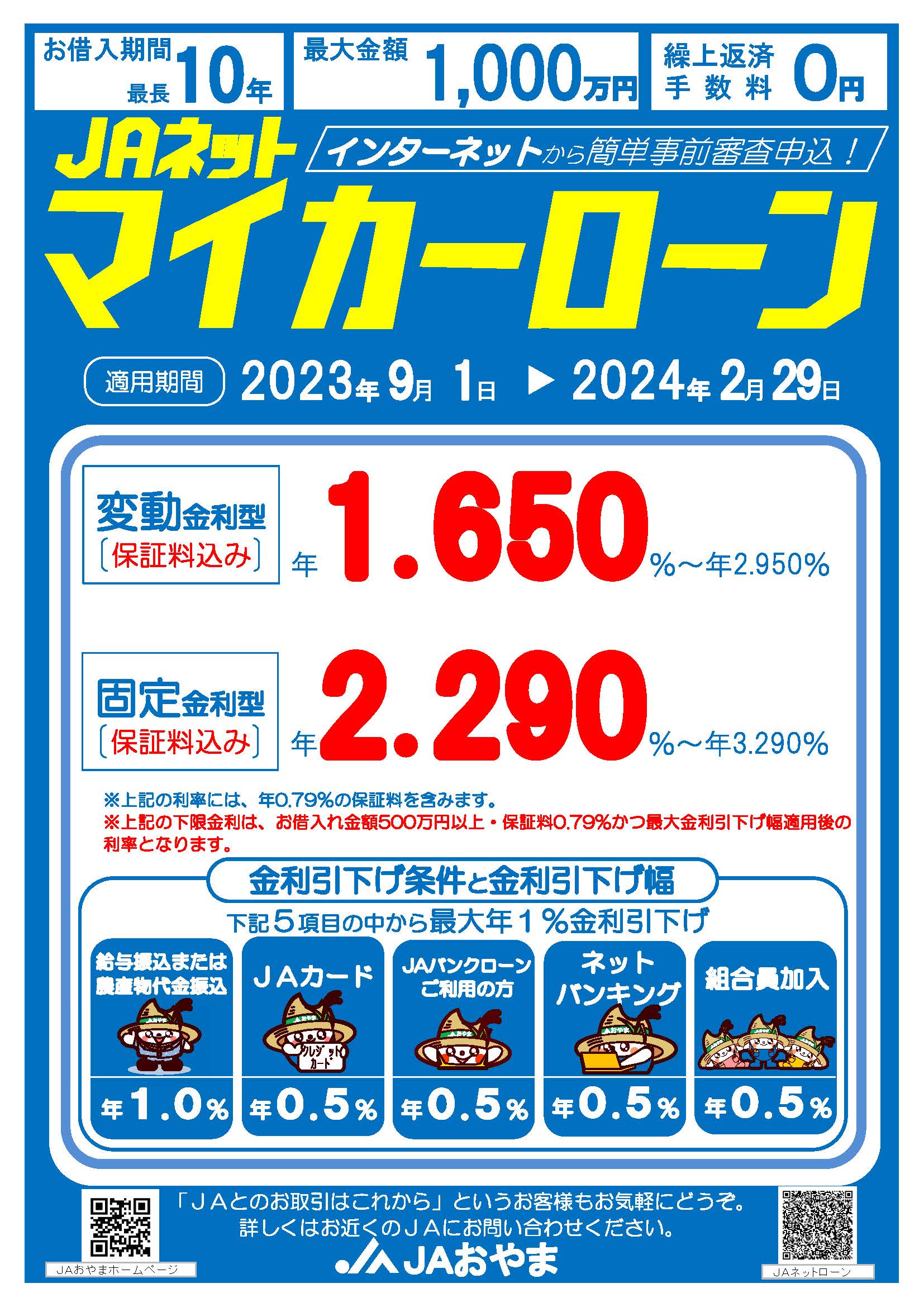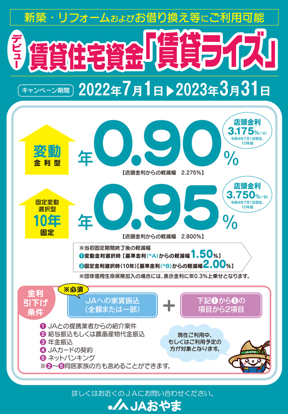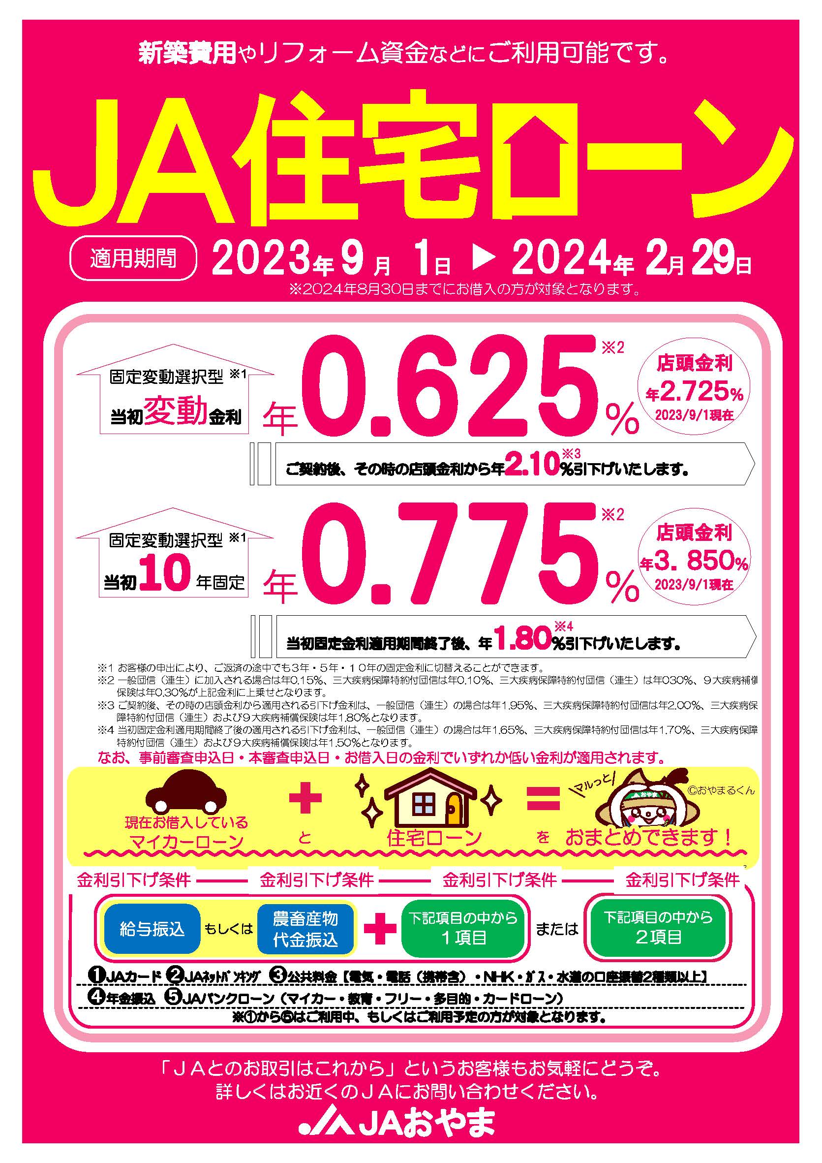 組合員や地域住民のみなさまへの住宅ローンやマイカーローンなど、各種ローン商品を提供しているほか、農業者・事業者のみなさまに必要な資金をご融資しております。また、地方公共団体、農業関連産業などへもご融資し、地域経済の質的向上・発展に貢献しております。さらに、国民金融公庫、農林漁業金融公庫等の融資の申込のお取次ぎもしております。