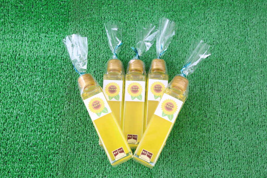 野木町産「ひまわり油」は、町の花であるヒマワリを種子から搾った純粋な油。