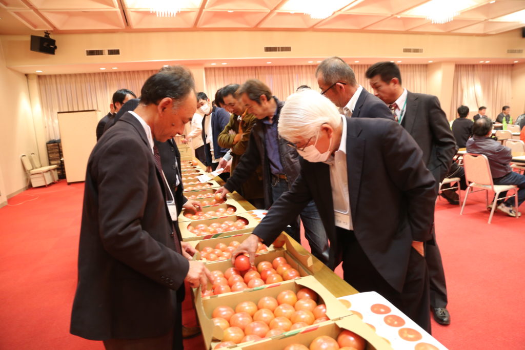 JAおやま東部トマト部会は4月上旬、小山市のJAおやま本店で2019年産トマト販売中間検討会を開きました。生産者、関係者ら約55人が出席。3月までの販売実績を報告、目ぞろえ会を行いました。