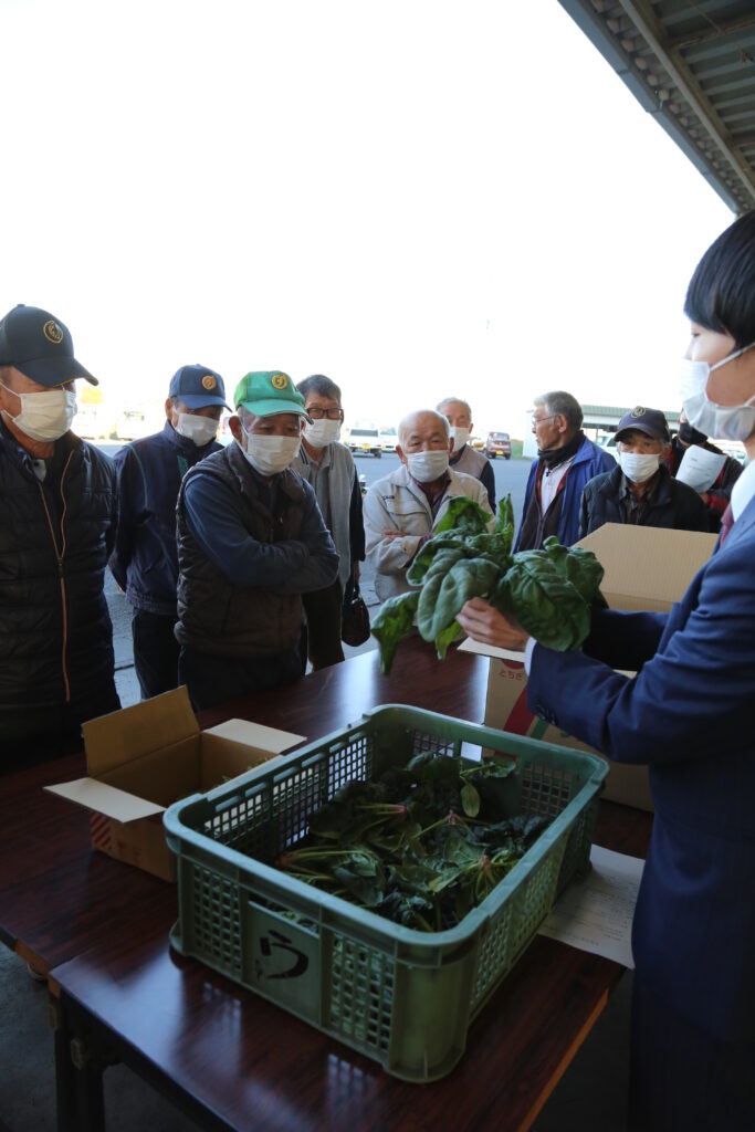 担当者は「降雨後は、圃場(ほじょう)が十分に乾いてから収穫する。地面が凍った場合は葉や葉柄が折れやすいため午後に収穫し、一晩たってから袋詰めをするなど高品質な状態での出荷をお願いしたい」と呼び掛けました。