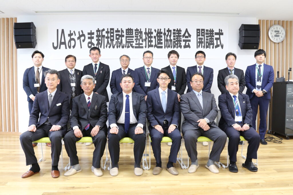 JAおやま新規就農塾推進協議会は3月26日、美田支店で新規就農塾の開講式を開きました。2期生の2人の他、県、市、農業委員会、JA、JAいちご部会などの関係者が参加しました。
