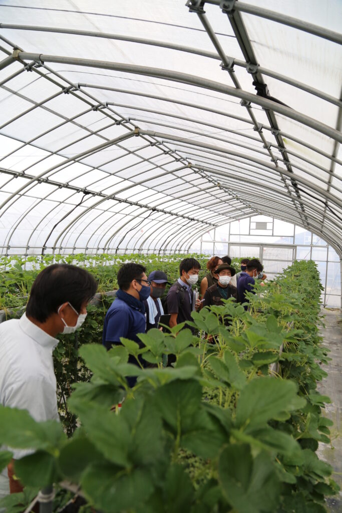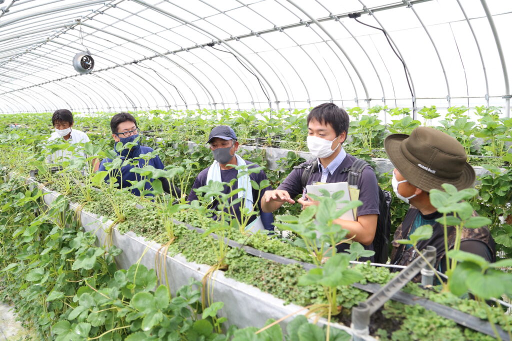 JAおやまいちご部会は9月6日、西部育苗センターで下都賀東部地区イチゴ無病苗現地検討会を開きました。2024年産の苗の生育状況を確認しました。