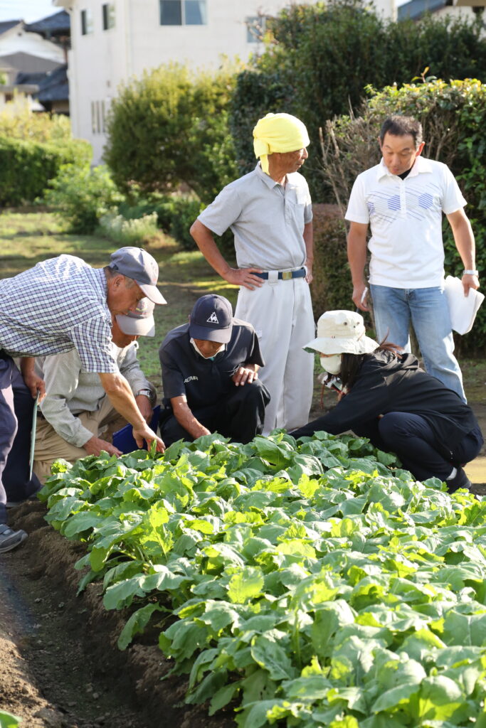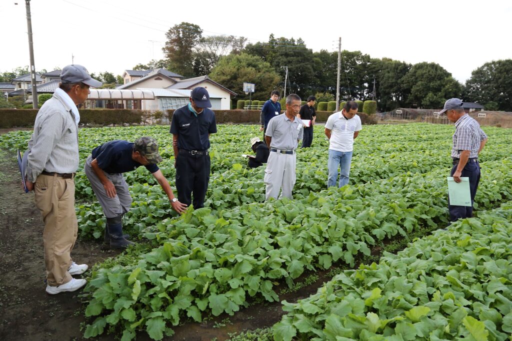 JAおやまカブ部会は9月29日、下野市の圃場(ほじょう)4カ所で現地検討会を開きました。部会員や関係者ら9人が参加し、生育状況を確認しました。