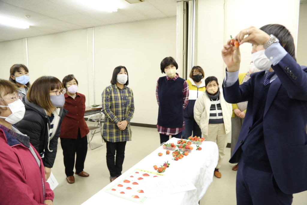 中島英樹部会長は「おやまの高品質なイチゴが求められている。高品質なイチゴは、女性の素晴らしい選果・選別のおかげだ。コロナ禍での栽培となったが今まで通り厳しく選果・選別をし、安全・安心で食べて幸せになれるおやまのイチゴの出荷をしてほしい」とあいさつしました。