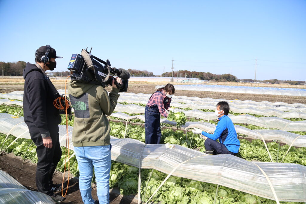 JAおやまレタス部会で野木町在住の舘野利弘さん(48)の圃場(ほじょう)と自宅で3月4日、地元の旬な食材のおいしさと魅力を紹介するグルメ番組NHK「とちぎ630」内のコーナー「とちぎグルメ部」の収録が行われ、3月19日に放送されました。