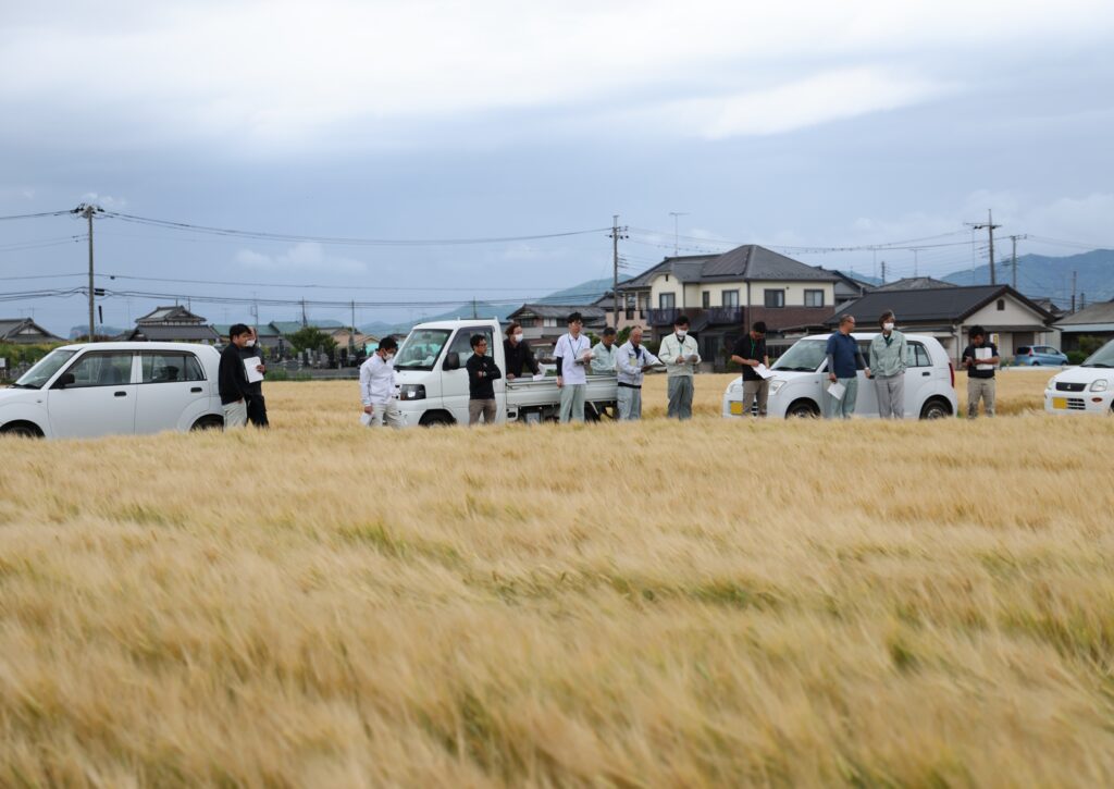JAおやまは5月8日、ビール大麦の収穫期を目前に控え、小山市の圃場(ほじょう)で適期刈り取り現地検討会と赤かび発生状況調査をしました。同市は、全国有数のビール大麦の産地。関係者ら15人が参加し、刈り取りの適期を確認。良質な麦の適期収穫への意識を高めた。現地検討会の結果から、荷受けする共同乾燥施設の稼働開始日を決めました。