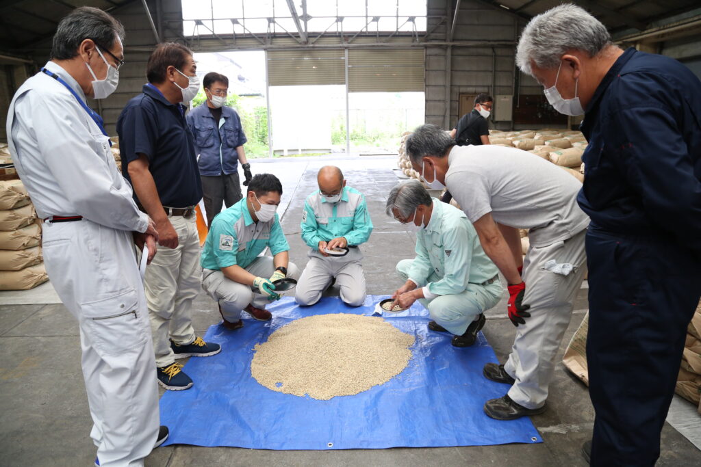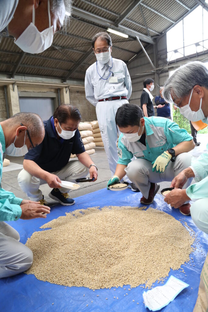 大島三千男部会長は「約半年間、気候に悩まされながら栽培してきた。長雨で穂発芽が見られ、乾燥調製など苦労したと思う。しかし、部会員の技術のおかげで被害を最小限に食い止められ、検査の日を迎えることができてうれしい」と話しました。