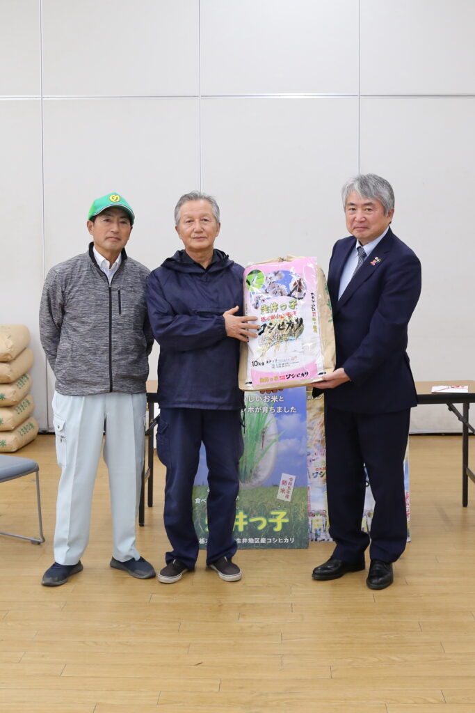 浅野市長は「フードバンクの協力に感謝する。地元でおいしいお米が栽培されていることを子どもたちに知ってもらい、食を楽しんでもらいたい」と謝意を述べますた。