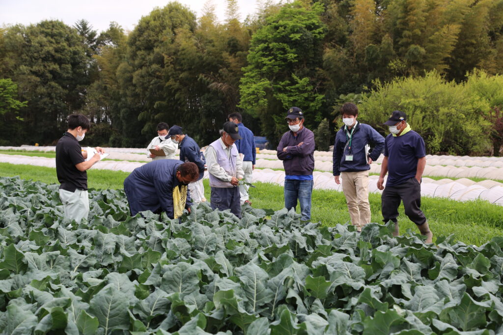 JAおやまブロッコリー部会は4月16日、管内の4ヵ所で2021年産春ブロッコリーの現地検討会を開きました。部会員、関係者ら21人が参加し、生育状況や病害虫の発生状況などを確認しました。