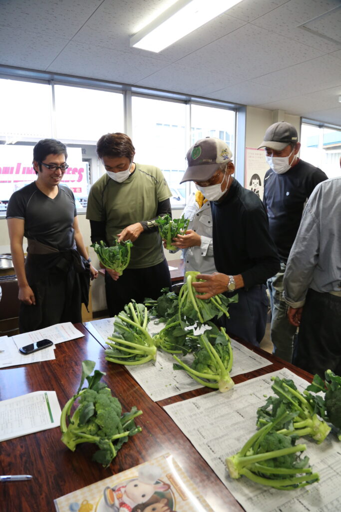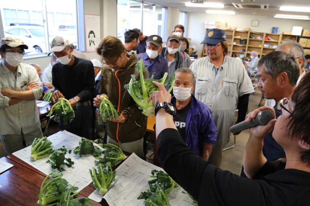 JAおやまブロッコリー部会は10月17日、東部選果場と北部集出荷所で、秋冬ブロッコリーの目ぞろえ会を開きました。東部会場は37人、北部会場は20人の部会員、市場関係者らが参加しました。等級ごとにブロッコリーを並べて、販売情勢や出荷規格、要領を検討しました。