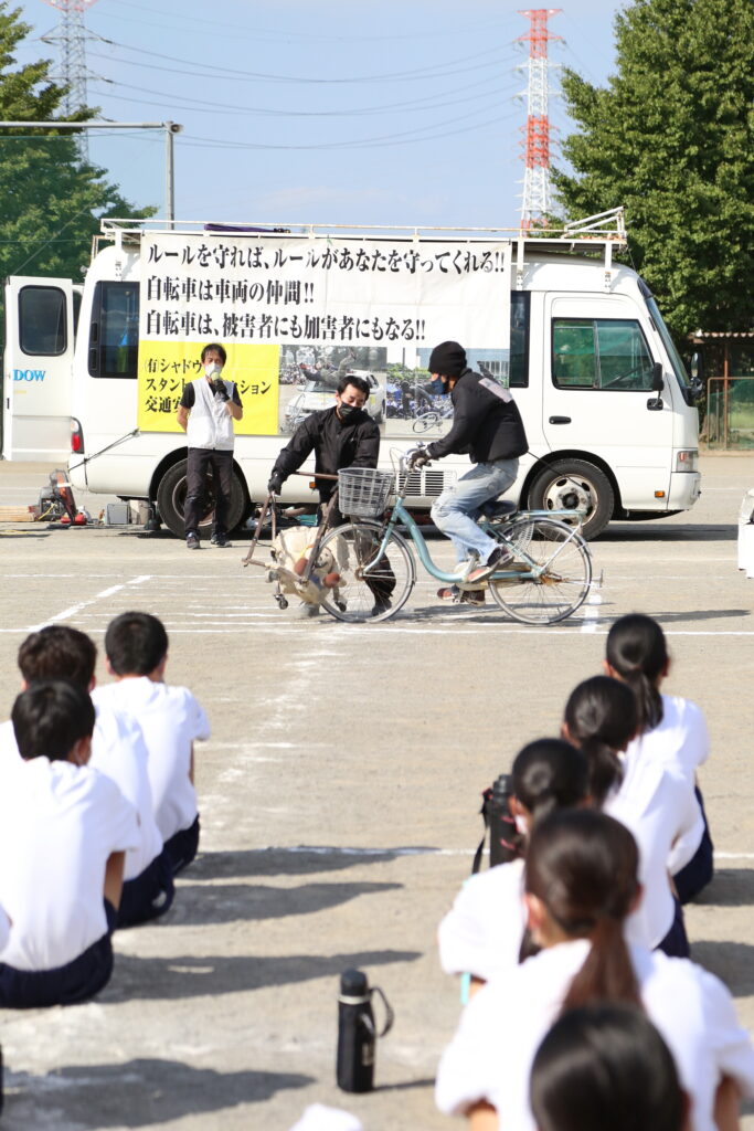 同校の松目亘史さんは「事故は身近にあるものと実感した。自転車に乗るときは集中して、周りを確認して乗りたい」と話しました。室井美優さんは「スタントを見て、改めて事故は怖いと思った。ヘルメットをしっかりかぶり、交通ルールを守る」と話しました。