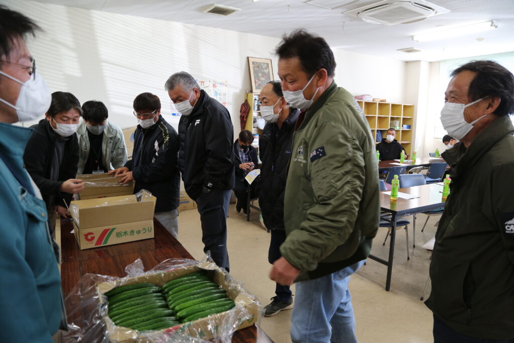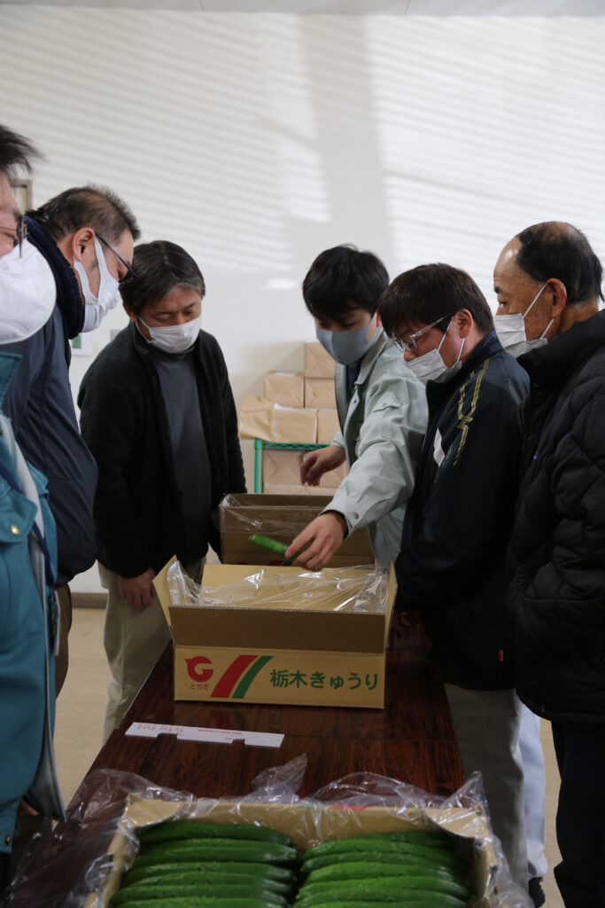 JAおやまで促成キュウリの出荷が始まりました。北部きゅうり部会は12月20日、北部集出荷所で2022年産促成キュウリ目ぞろえ会を開きました。生産者や市場関係者ら18人が参加。出荷規格を厳守する他、生産者、市場、JA全農とちぎと連絡を密にし、有利販売に努めることを確認しました。