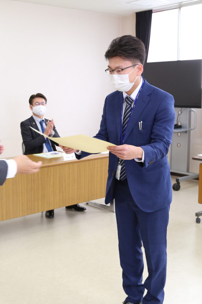 福田浩一郎組合長は「各職員の模範となるようこれからも組合員・利用者に安全と安心、満足のサービスを提供してほしい」と話しました。また同日、2年連続優績受賞の実績を評価し、安良岡悠樹さんを「スーパーライフアドバイザー(SLA)」として認証しました。