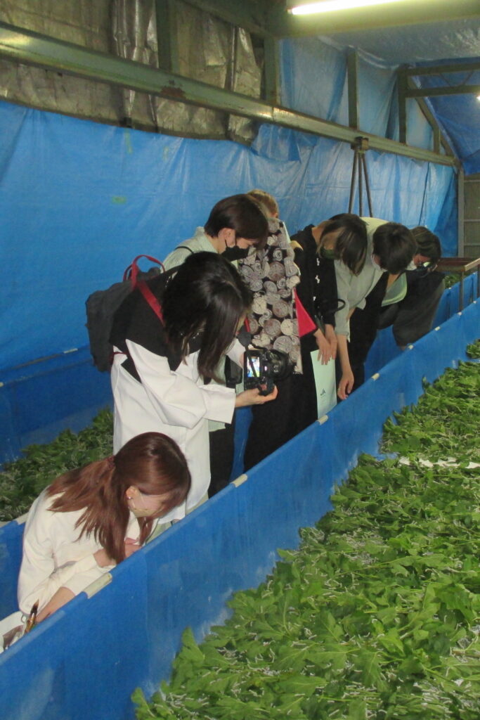 名古屋でオリジナル着物を販売している呉服店「僕らのゆめ」が6月14日、養蚕部会の福田芳男さん宅を訪れ、養蚕状況を視察しました。着物の卸売り問屋やバイヤー、関係者ら約20人が参加しました。