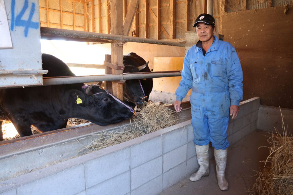 妻と長男の支えで約40頭を肥育、牛を観察しながら健康状態や餌の食べた量などを見て異常がないか確認する毎日です。