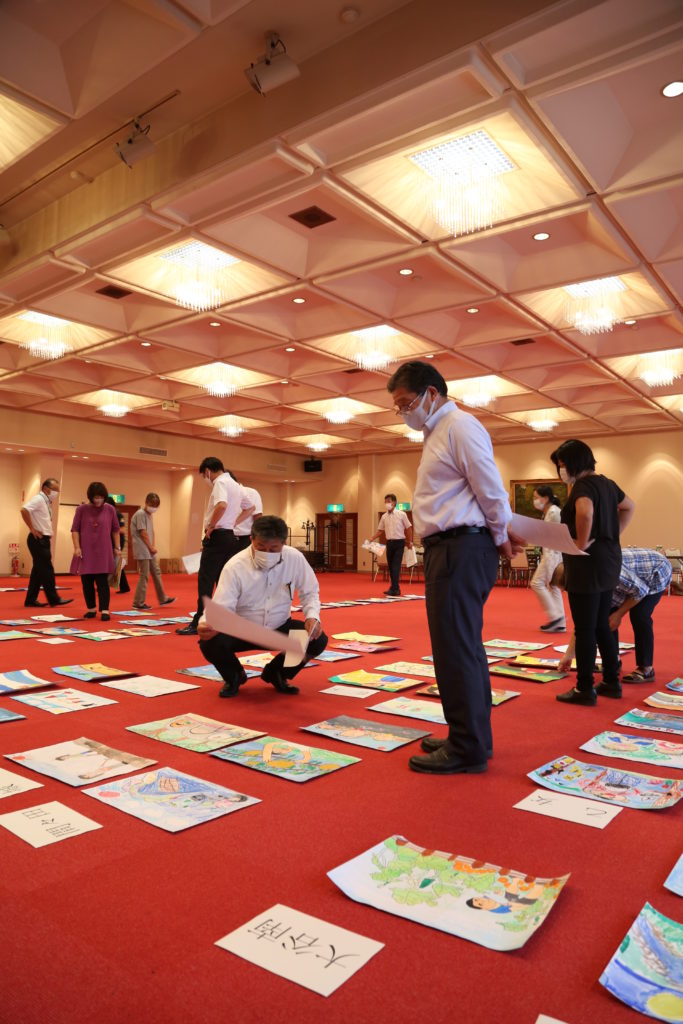 女性会役員らは「独創性があり、伸び伸びと色彩豊かに心を込めた作風が多い」「テーマに沿って、生き生きと描かれているもの。また、画用紙いっぱいに描かれている作品に心打たれる」と話しながら審査を行いました。