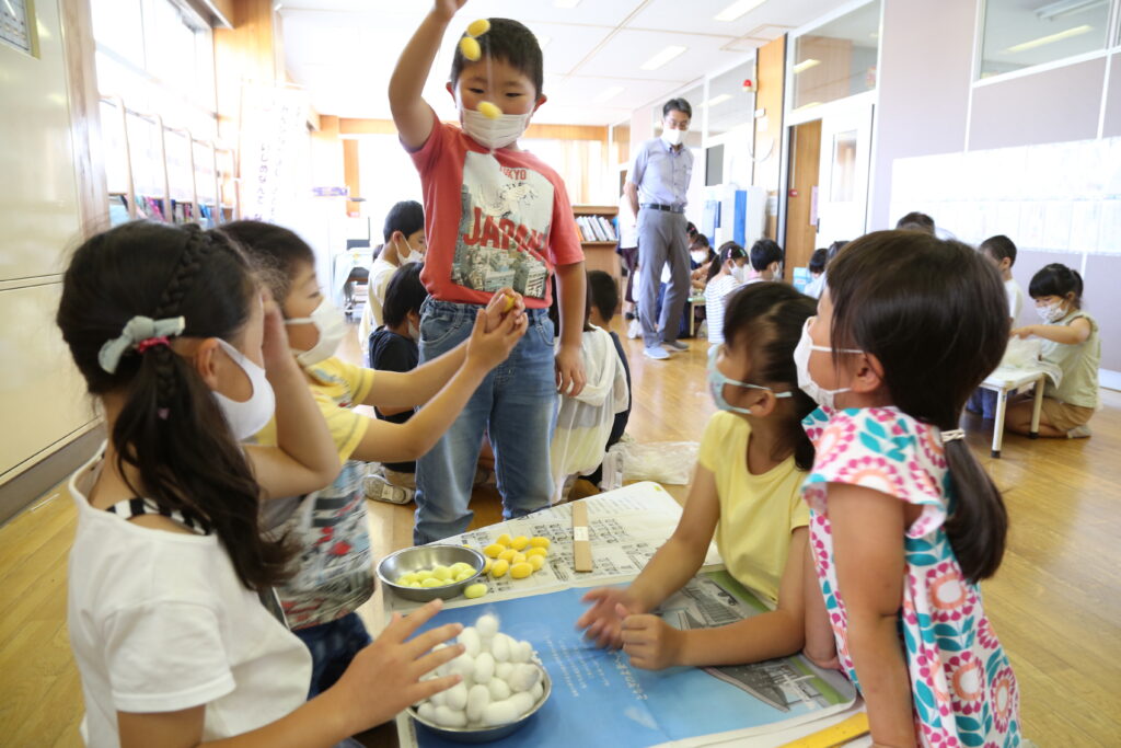 地元の養蚕 伝統を紡ぐ 児童が収繭を体験
