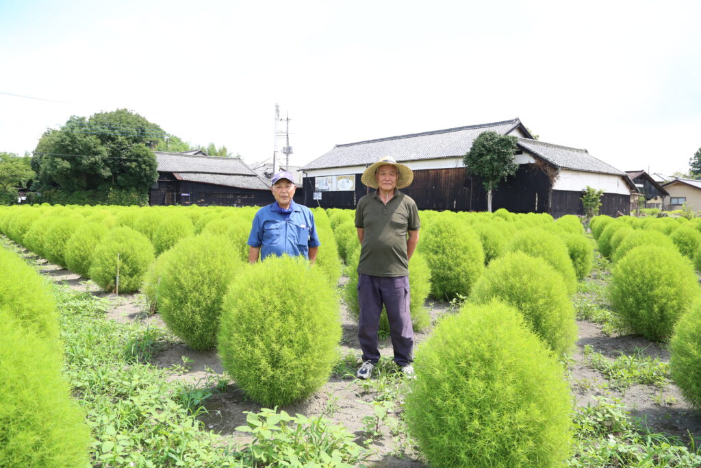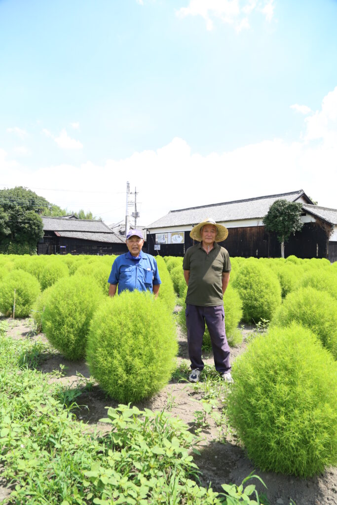 「飾り馬の里」の清水一男会長と秋元和重副会長は、国の多面的機能支払交付金を活用し、小薬の遊休農地約2000平方メートルにコキアを植栽し、地域住民に目で楽しんでもらえるよう「飾り馬の里」のメンバーと共に農地の景観維持に取り組んでいます。