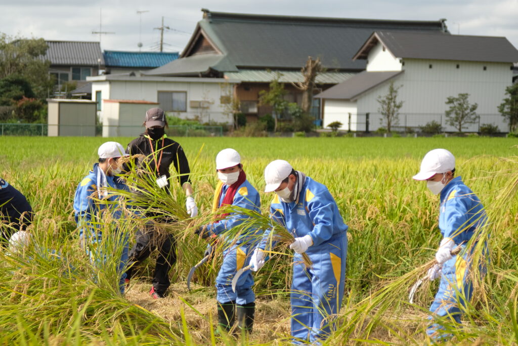 小山市立絹義務教育学校は9月16日、旧延島小学校の近くの圃場(ほじょう)で稲刈り体験を行いました。5年生27人が参加し、田んぼの学校実行委員の指導で、5月中旬に植えた稲を刈り取りしました。