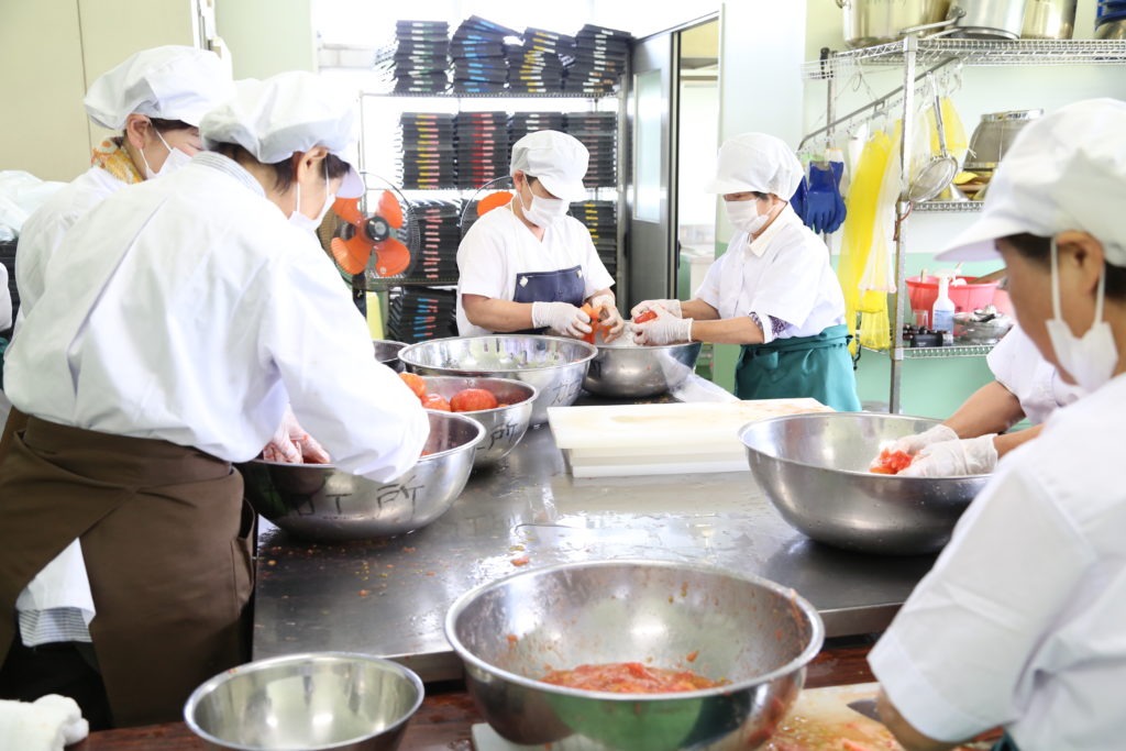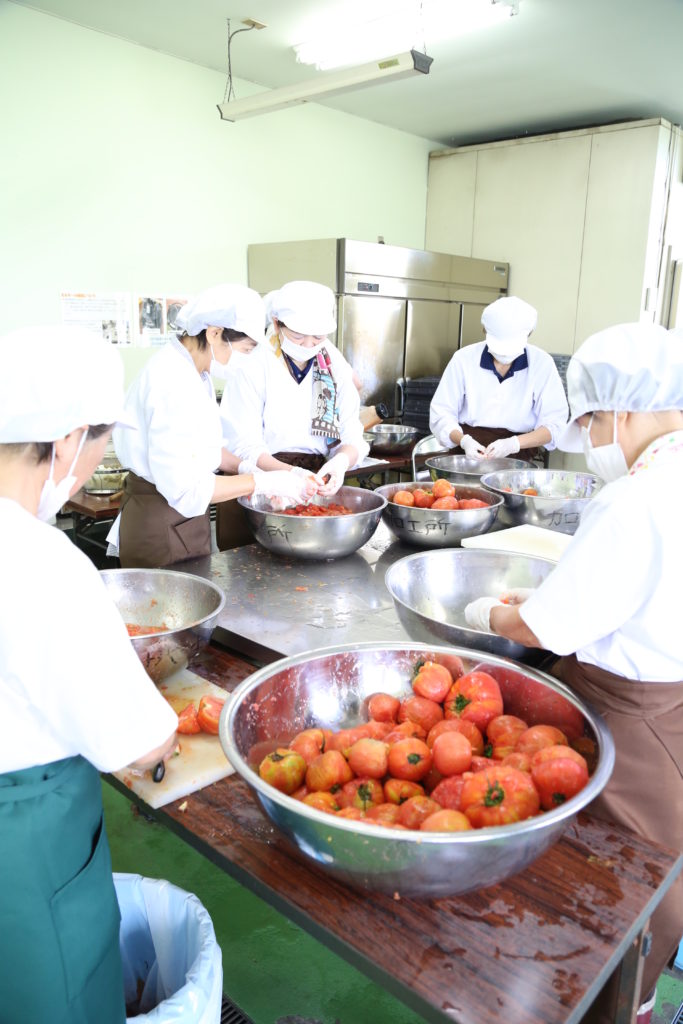 JAおやま女性会加工グループ「フレッシュ」は6月下旬、小山市のJA西部加工所でトマトソースを作りました。会員7人が参加しました。