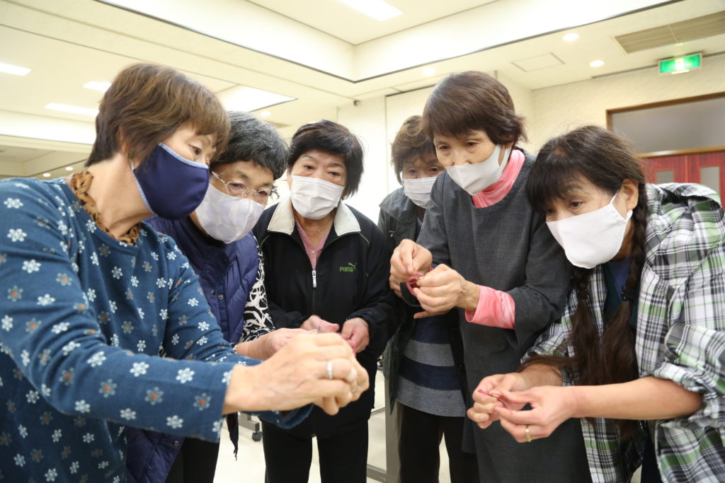 針谷千枝子支部長は「コロナ禍で活動自粛中であったが、その中で協力できることがあることはありがたい。細かい作業になるが焦らず、急がず、一つ一つ丁寧に制作していこう」とあいさつしました。