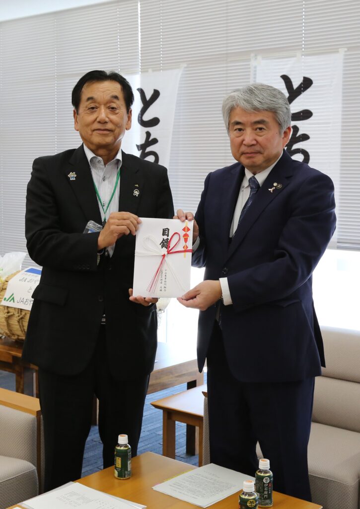 10月18日には、同JAの渡邉文雄組合長が小山市役所を訪ね、浅野正富市長に目録を手渡しました。