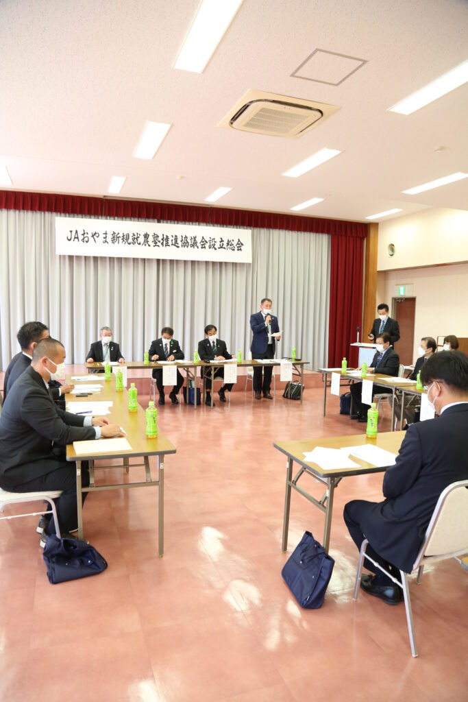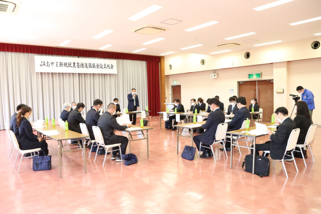 JAおやまは4月25日、農業の担い手となる農業経営者を育成・支援する新規就農塾推進協議会を設立し、本店で総会を行いました。協議会の役員、関係者ら23人が出席。設置要領や2022年度の事業計画など6議案全てを承認しました。