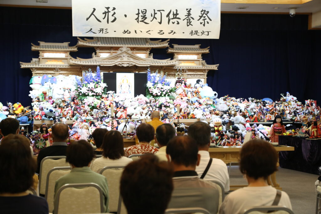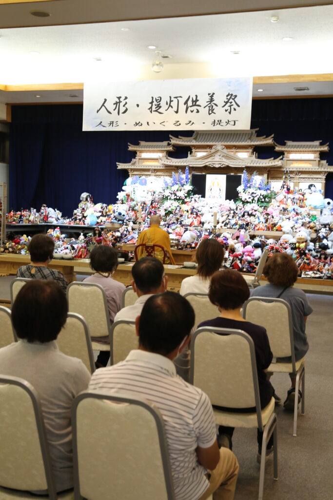人形や縫いぐるみ、ちょうちんを供養することで、物を慈しむ心を養ってもらうことが目的で、僧侶の読経の下、供養しました。新型コロナ感染拡大防止のため中止としていたが、4年ぶりに開催しました。