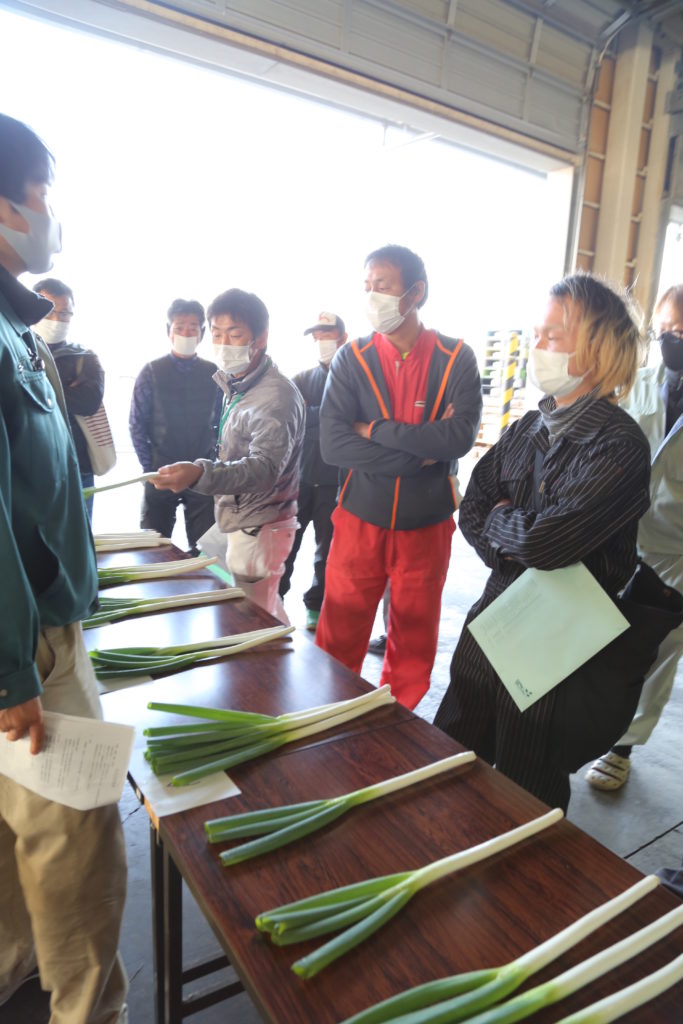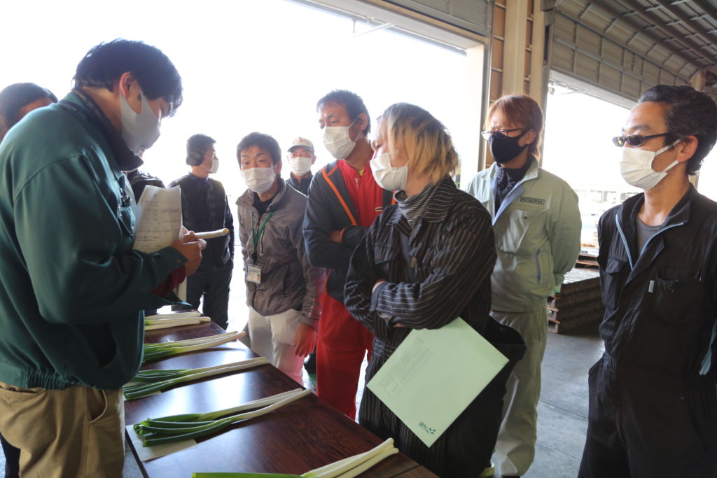 JAおやまネギ部会は11月26日、JA北部集出荷所で秋冬ネギ目ぞろえ会を開いきました。部会員や関係者約30人が、出荷最盛期を向かえる秋冬ネギの規格を確認した。市場関係者が販売情勢を報告。他産地の出荷状況から、年内は品薄が続くことが予測されるとして年内出荷を呼び掛けました。