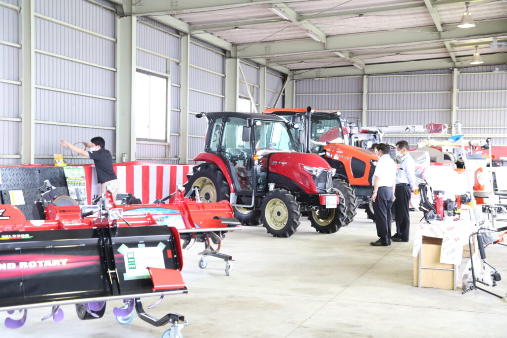 JAおやまは7月15日から17日の3日間、JAアクティー格納庫で農機展示会を開きました。新型コロナウイルス感染拡大の影響で、農業機械大展示会など中止となったため、組合員向けに新商品と低コストの農業機械展示会を開き、今後の農業を支える大規模農家や集落営農組織に対して営農情報の発信と新技術を提供することが目的です。