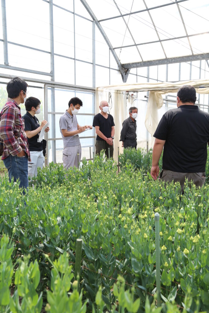 JAおやま花卉(かき)園芸組合トルコギキョウ部会は5月26日、管内圃場(ほじょう)2ヶ所で現地検討会を開きました。部会員、関係機関ら8人が参加し、生産の現状について意見交換しました。