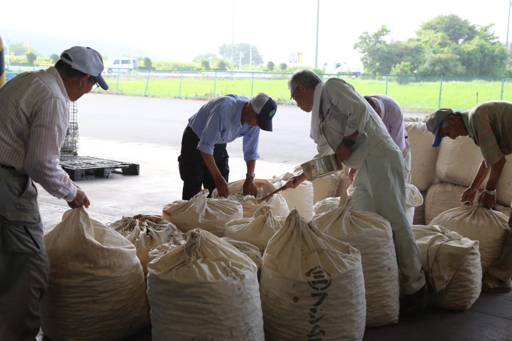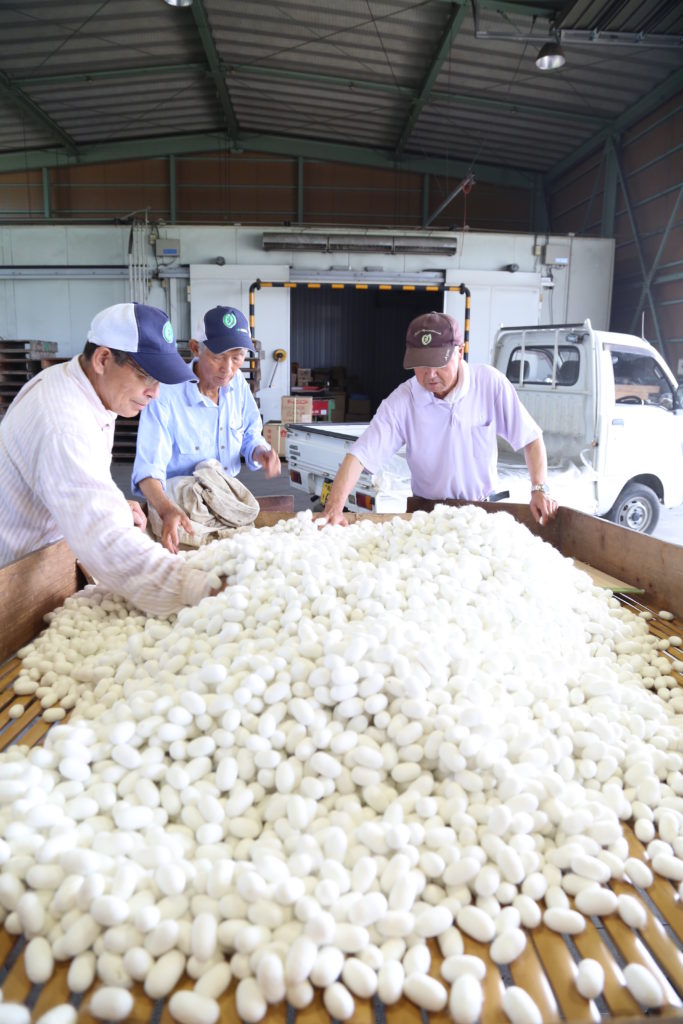 JAおやま養蚕部会は7月30日、小山市のJAおやま桑集荷所で、夏蚕繭「錦秋鐘和(きんしゅうしょうわ)」を出荷しました。出荷は年5回行っており、今回は3回目。4戸の生産者が持ち込んだ繭を選除繭の作業をして、群馬県の碓氷製糸に送りました。