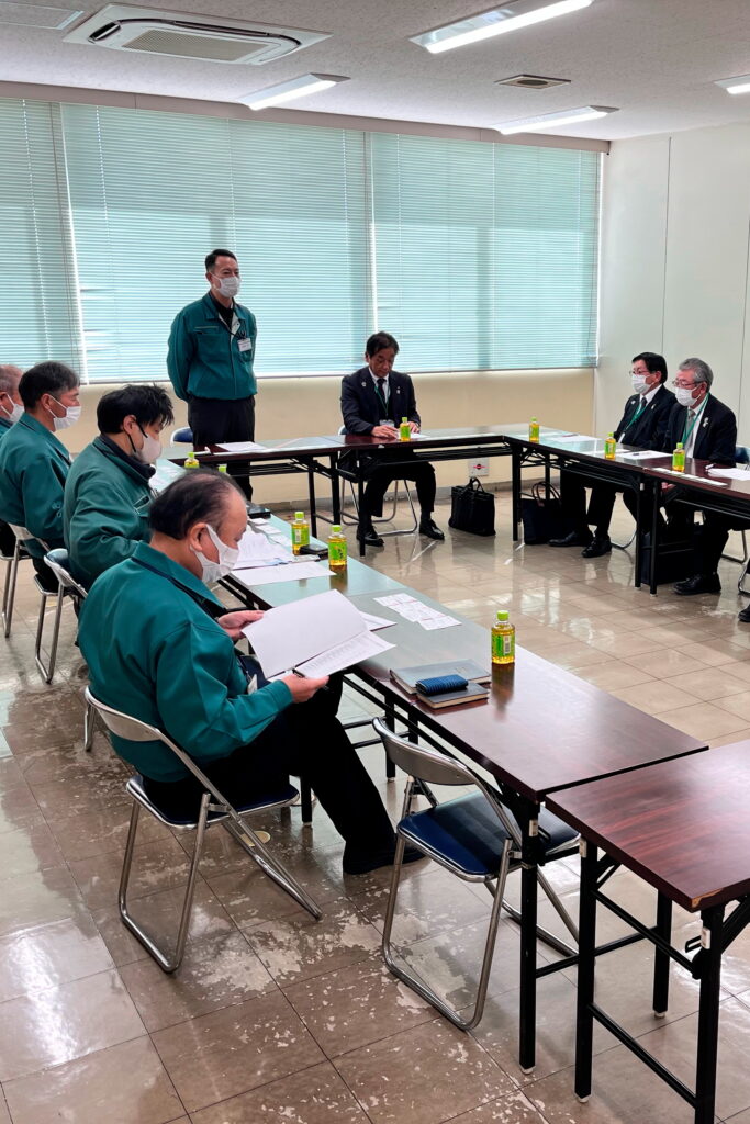 JAの渡邉文雄組合長や常勤役員、営農経済部長、園芸振興、園芸販売の各課長が訪問。市場の代表や担当者と情報や意見を交わして、販売の強化を依頼しました。
