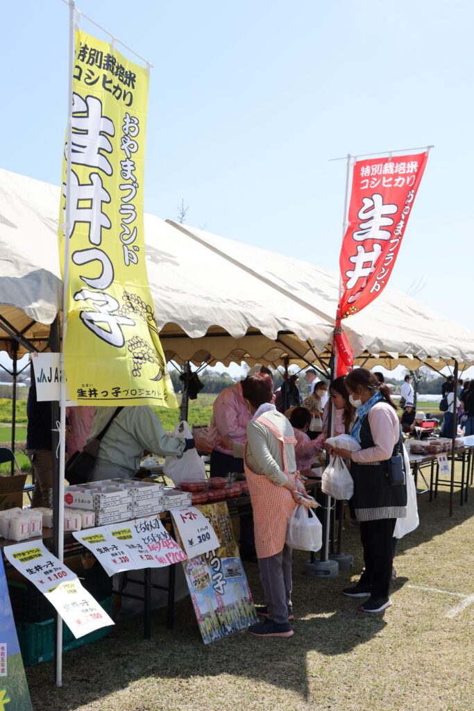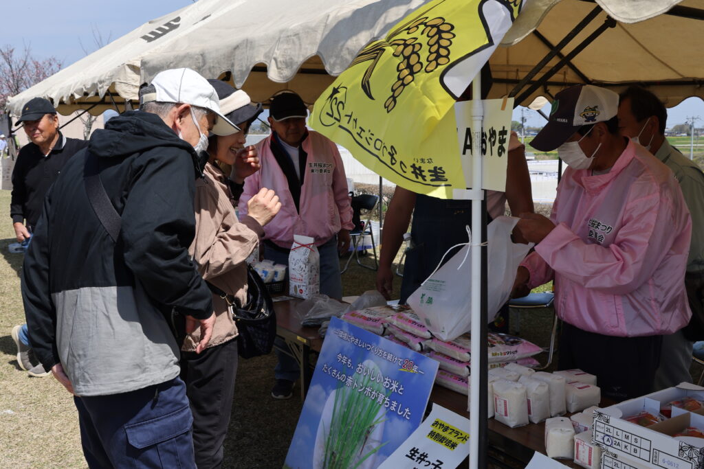 小山市生井地区の渡良瀬遊水地隣に位置する生井桜づつみで4月13日、「第13回ラムサール条約湿地登録渡良瀬遊水地生井桜まつり」が開かれました。JAおやまは、会場で特別栽培米「生井っ子」や地場産野菜を販売しました。