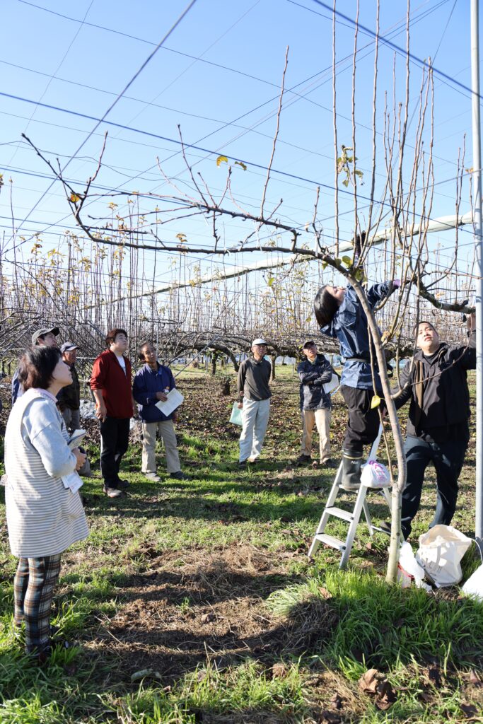 生産者の高齢化や管理軽減を図るために枝折り剪定の説明と実演もしました。