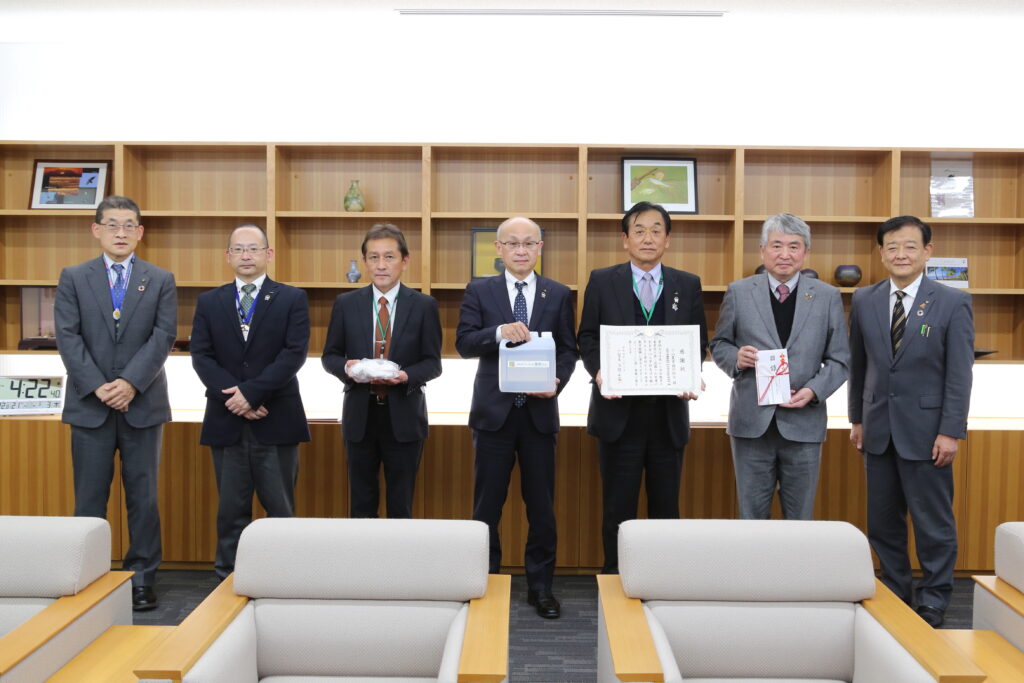 浅野市長は「感染を防ぐ上で、手洗いと消毒は重要。寄贈は大変助かり、有効に活用したい」と感謝しました。