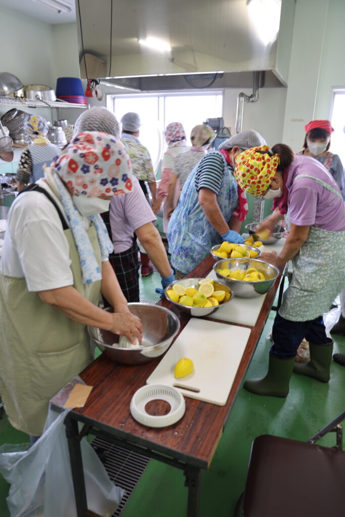 会員らは材料を刻み、ミキサーにかけ、調味料と一緒に時間をかけて煮詰め、冷ましてから容器に詰めました。