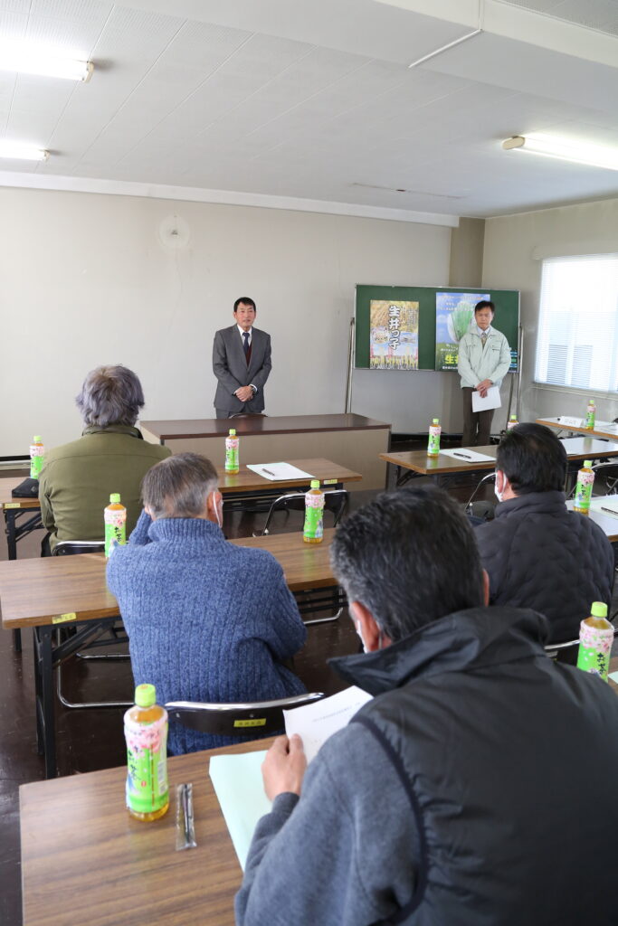 同プロジェクトの池貝孝雄会長は「2023年産は猛暑が続き、栽培に非常に苦労した。反省点などを生かし、2024年産はしっかり猛暑対策をして高品質な生井っ子の生産に努めよう」とあいさつしました。