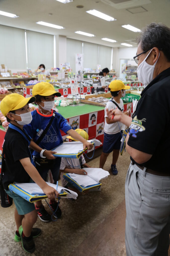 児童は同直売所の職員の説明に真剣に聞き、見たことや聞いたことを熱心にノートに書き取った。児童からは「一番売れている野菜は何ですか」など多くの質問が出ました。