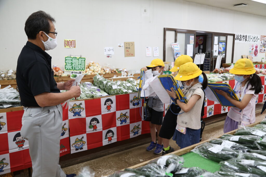 小山市立乙女小学校の2年生17人が6月23日、学区探検としてJAおやま直売所「グリーンセンター」を訪れました。