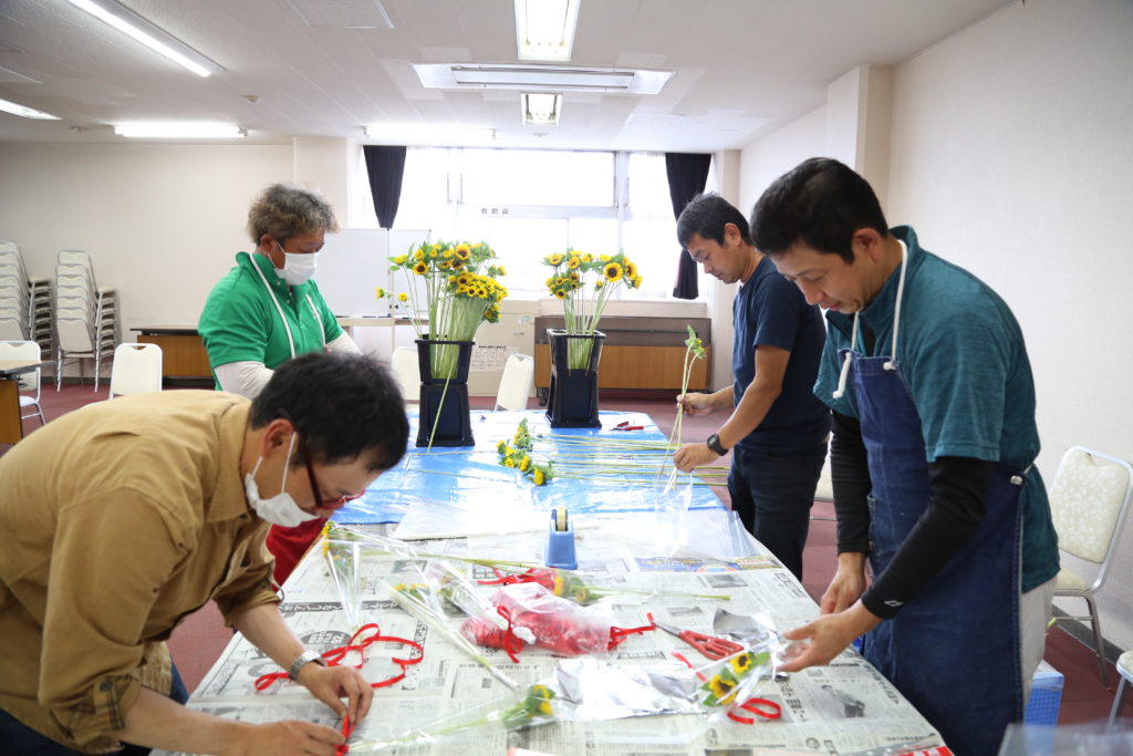 県連盟委員らは「花きを配ることで少しでも消費者に県産の花きの良さを伝えられればうれしい。花があるだけで雰囲気も華やかになるので新型コロナウイルスの影響で沈みがちな気持ちを晴れやかにしてほしい」と話しました。