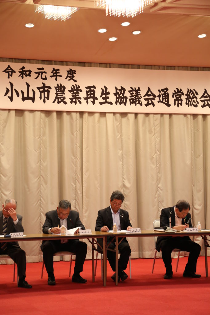 小山市農業再生協議会は、5月上旬、JAおやま本店で2019年度の通常総会を開きました。会員や関係者ら38人が出席。18年度事業報告、19年度事業計画、収支予算などを審議、承認されました。