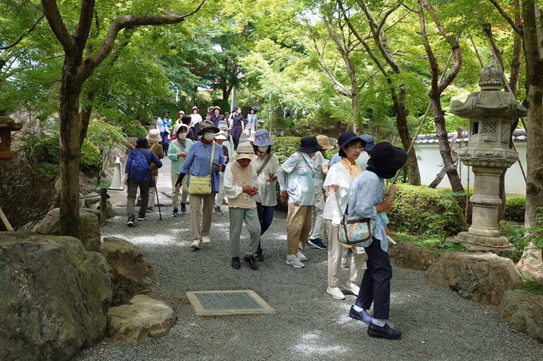 同公園は、群馬県内でも遺跡の多い地区にあり、大室古墳群を保存する。木陰や芝生もたくさんあり、自然を楽しみながら歩きました。また、床もみじで有名な「宝徳寺」や2023年3月にオープンした道の駅「まえばし赤城」、群馬まいたけセンター、登利平を訪れ、歴史や農産物、買い物などを楽しみました。