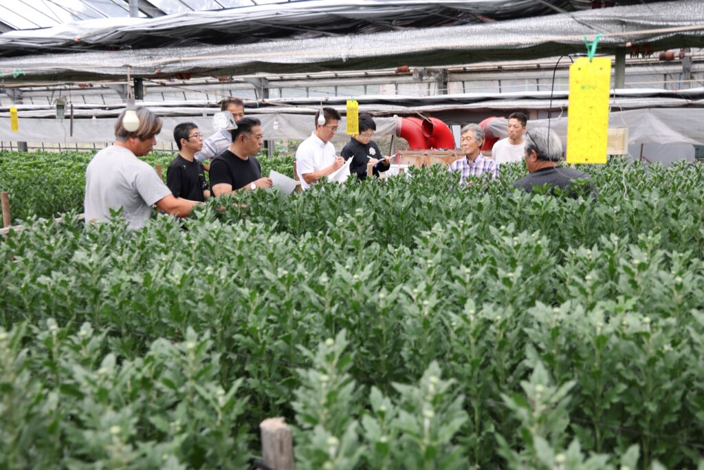 <菊の現地検討会 害虫対策を共有